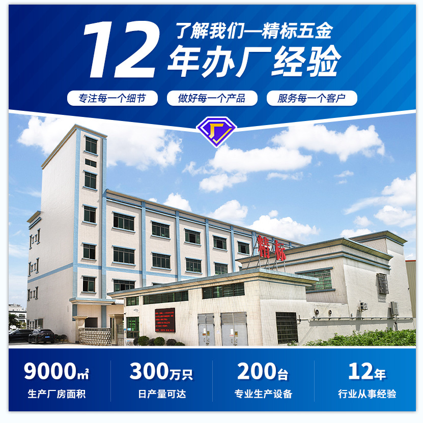 深圳精標(biāo)五金制品有限公司成立于2010年3月,現(xiàn)廣東惠州制造基地?fù)碛袕S(chǎng)房面積9000平方米,擁有員工68人,專(zhuān)業(yè)技術(shù)人員25人,年產(chǎn)各類(lèi)緊固件3000多噸,銷(xiāo)售額5000多萬(wàn)元。是專(zhuān)業(yè)生產(chǎn)和銷(xiāo)售各類(lèi)五金緊固件產(chǎn)品的公司,本公司擁科學(xué)的質(zhì)量管理體系,完善的生產(chǎn)檢測(cè)設(shè)備(光選機(jī)、材料成分分析儀、鹽霧機(jī)、硬度計(jì)、二次元等)和專(zhuān)業(yè)的工程技術(shù)人員。產(chǎn)品服務(wù)的行業(yè)有:電子、電器、電源、光伏新能源等。給包括上...